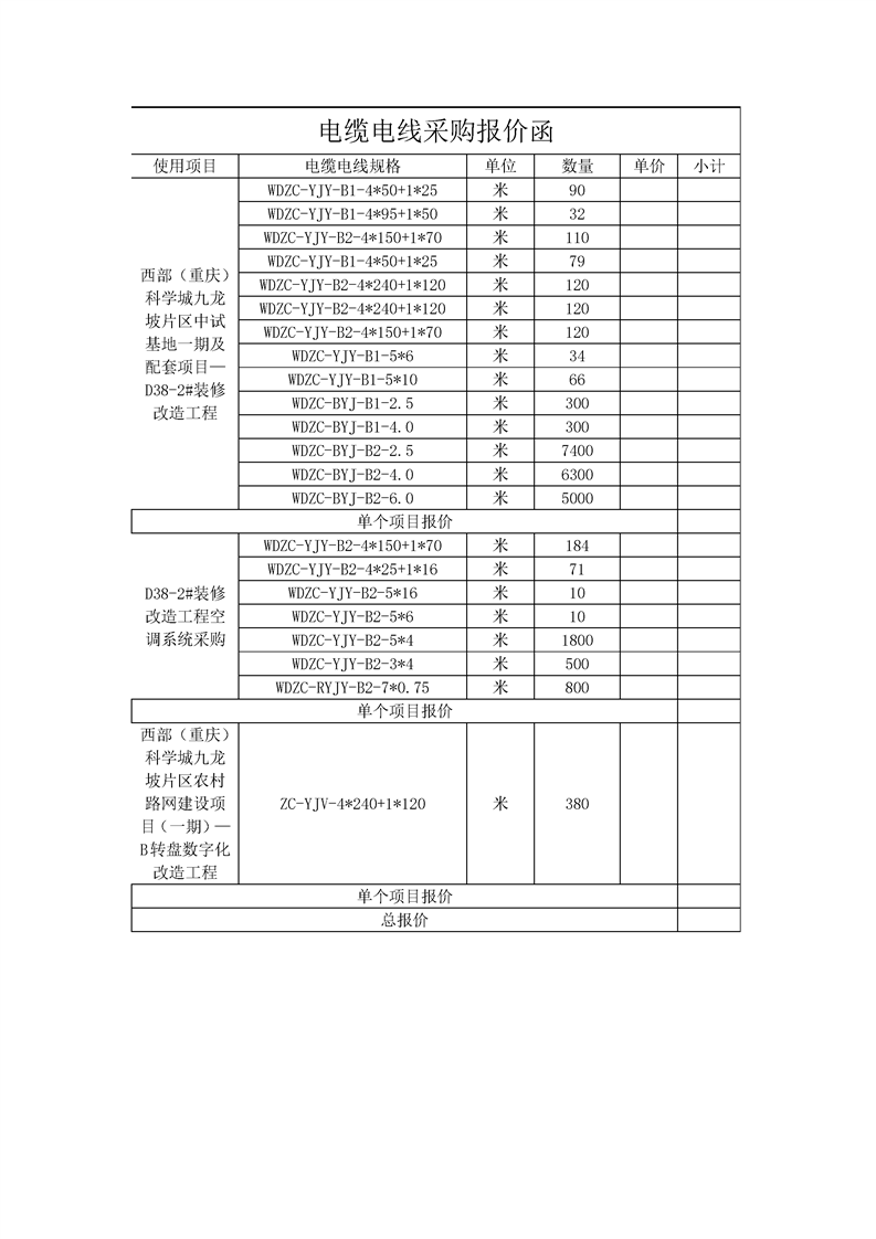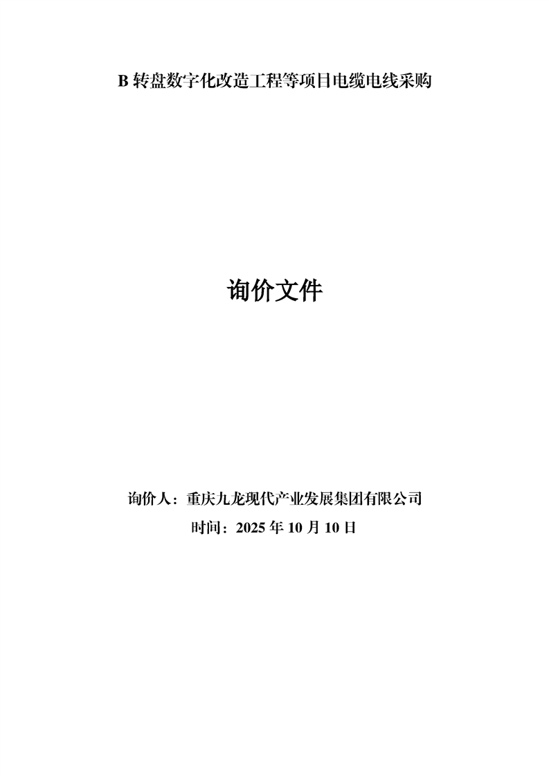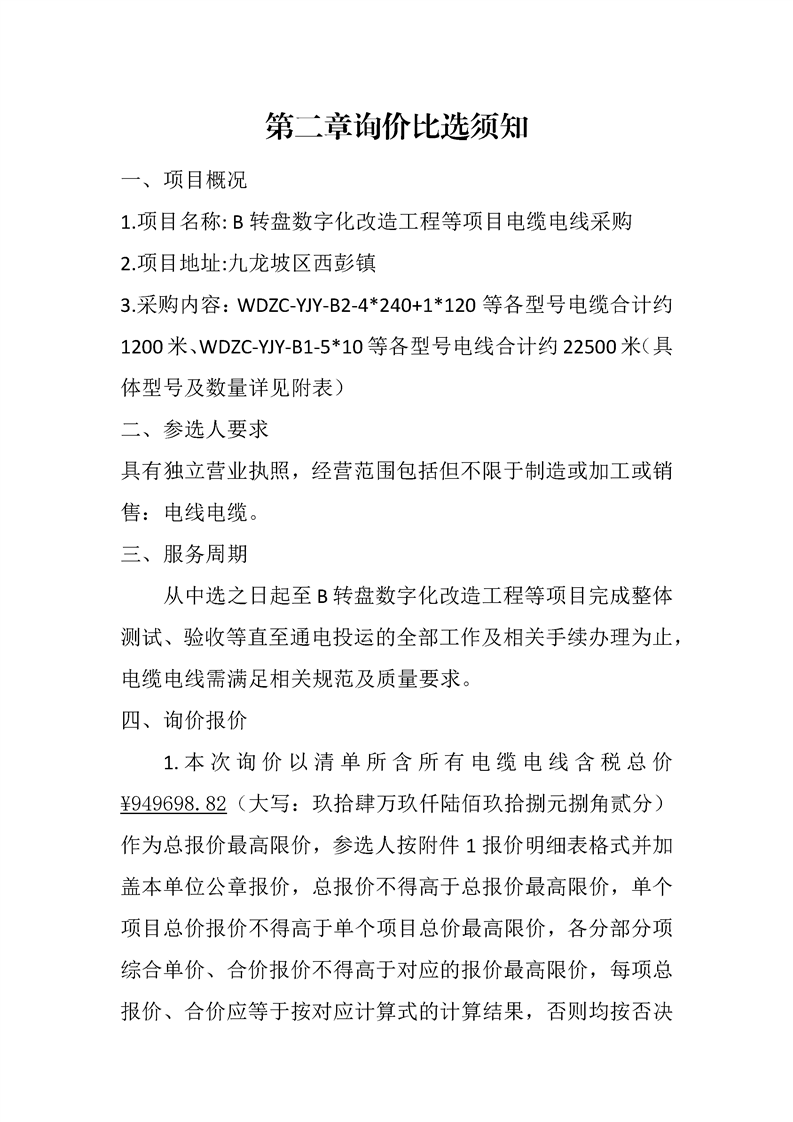 B转盘数字化改造工程等项目电缆电线采购询价文件