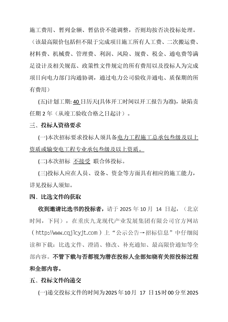 枢纽港九龙园智能高端装备及仓储配套产业园—临港服务城变压器增容2500KVA用电工程竞争性比选公告