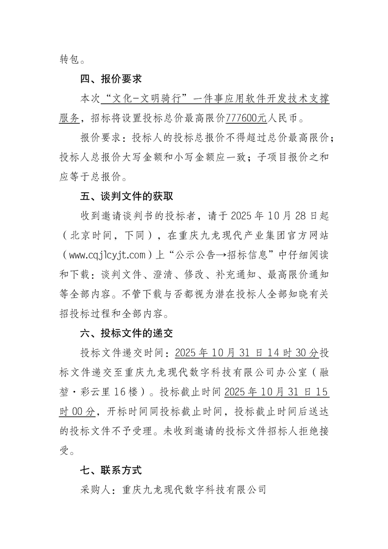 “文化-文明骑行”一件事应用软件开发技术支撑服务竞争性谈判公告