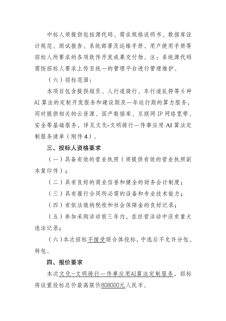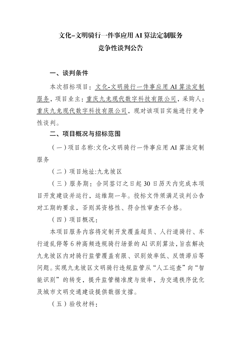 文化-文明骑行一件事应用AI算法定制服务竞争性谈判公告