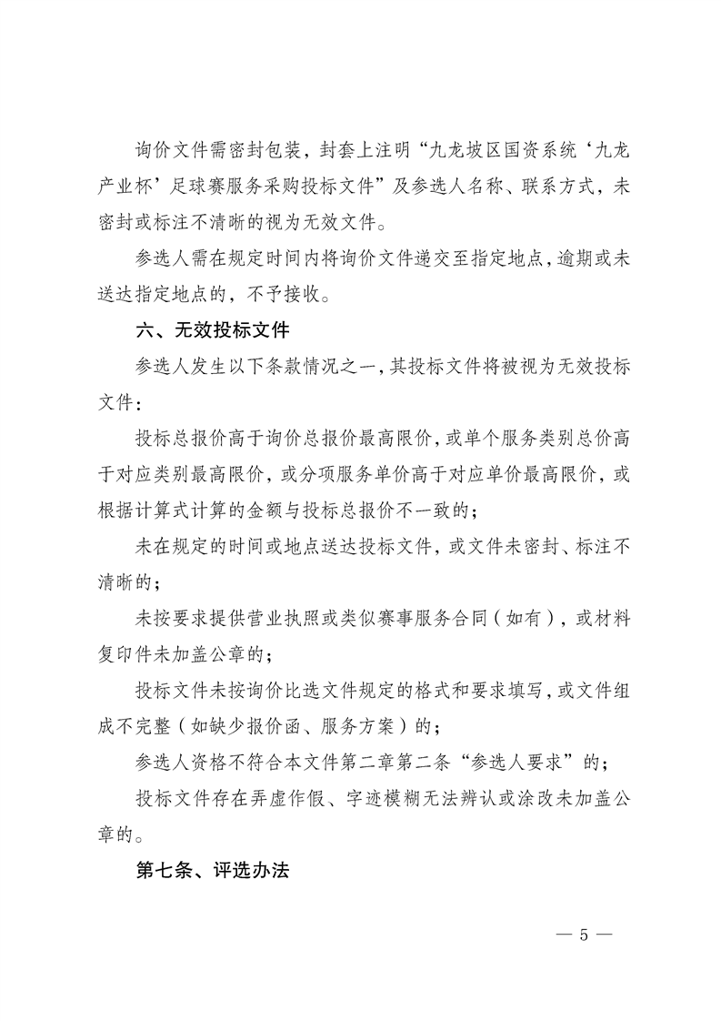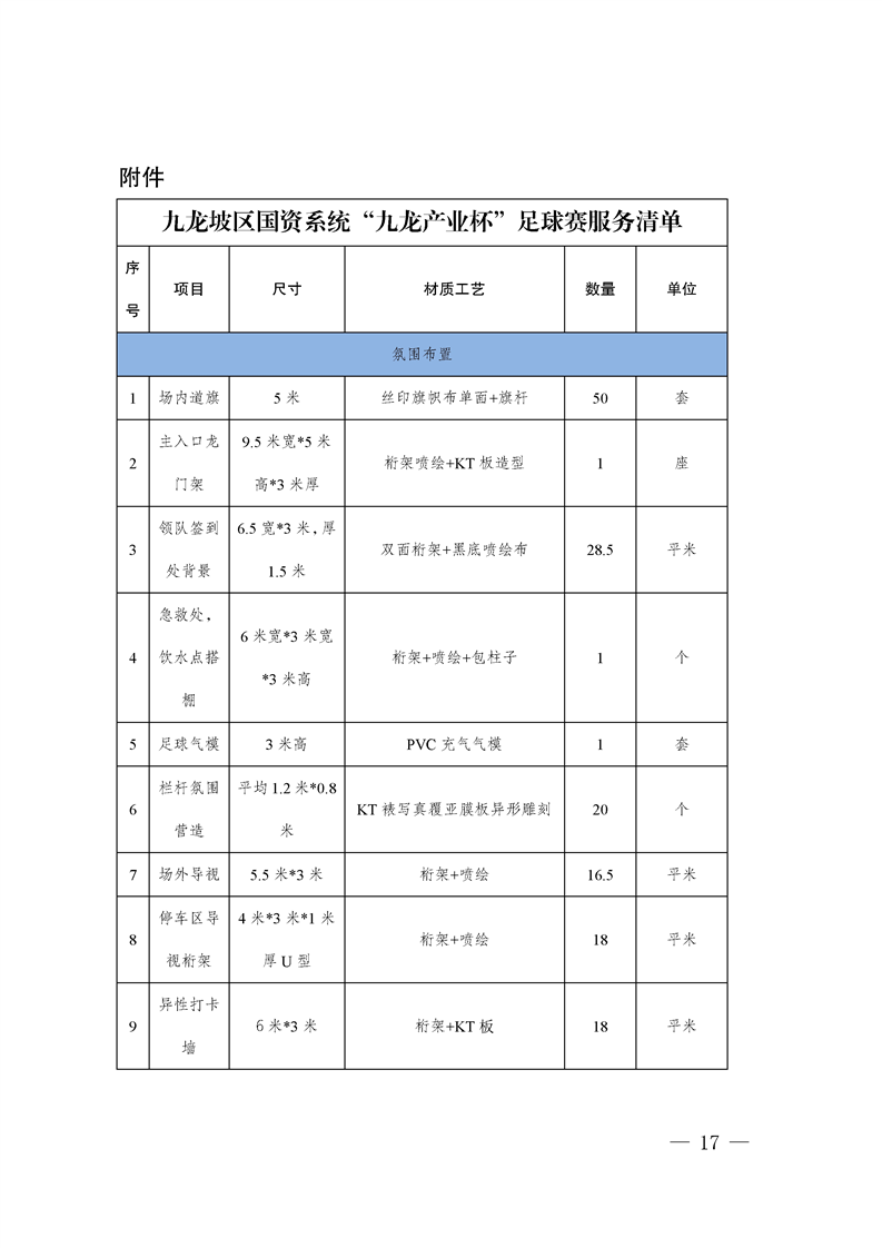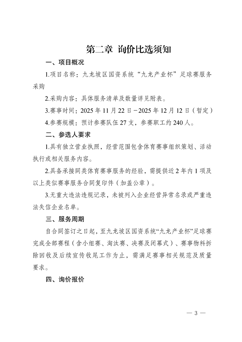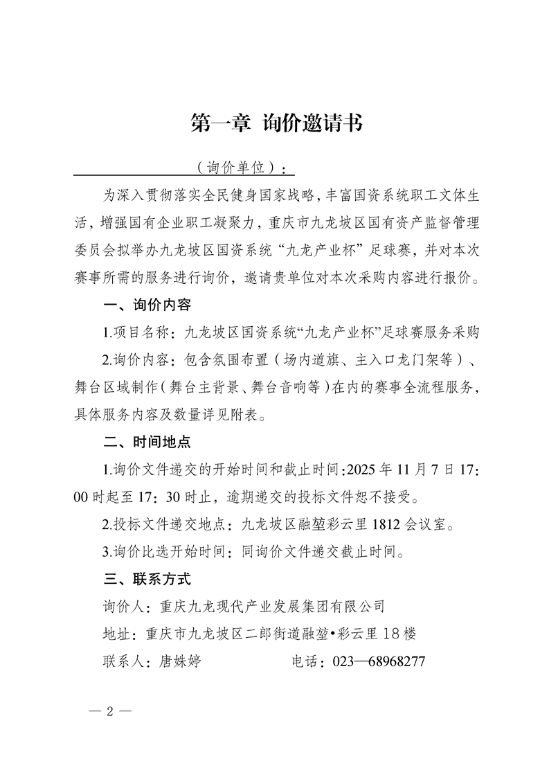 九龙坡区国资系统“九龙产业杯”足球赛服务采购询价文件