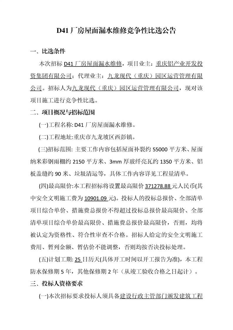 关于西彭镇华丈寺污水处理设施运营的比选公告