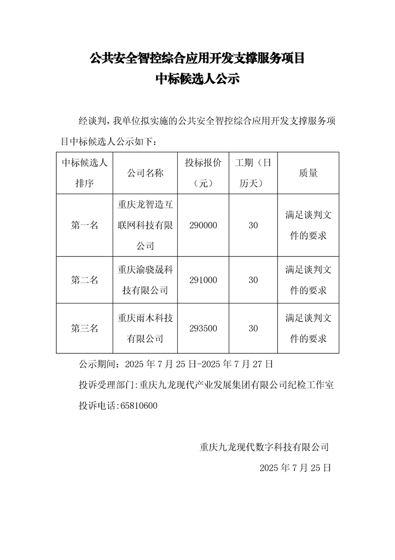 公共安全智控综合应用开发支撑服务项目中标候选人公示