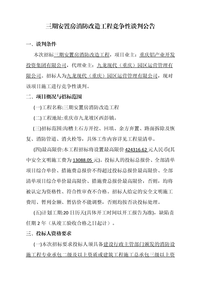 三期安置房消防改造工程竞争性谈判公告