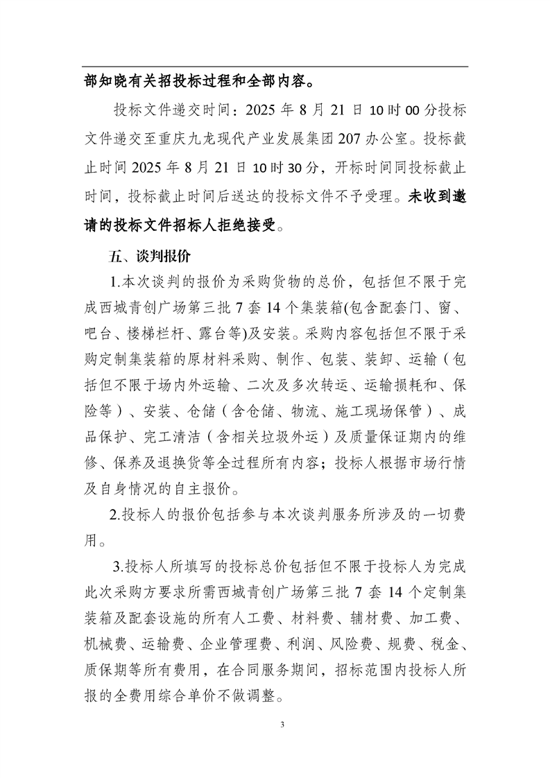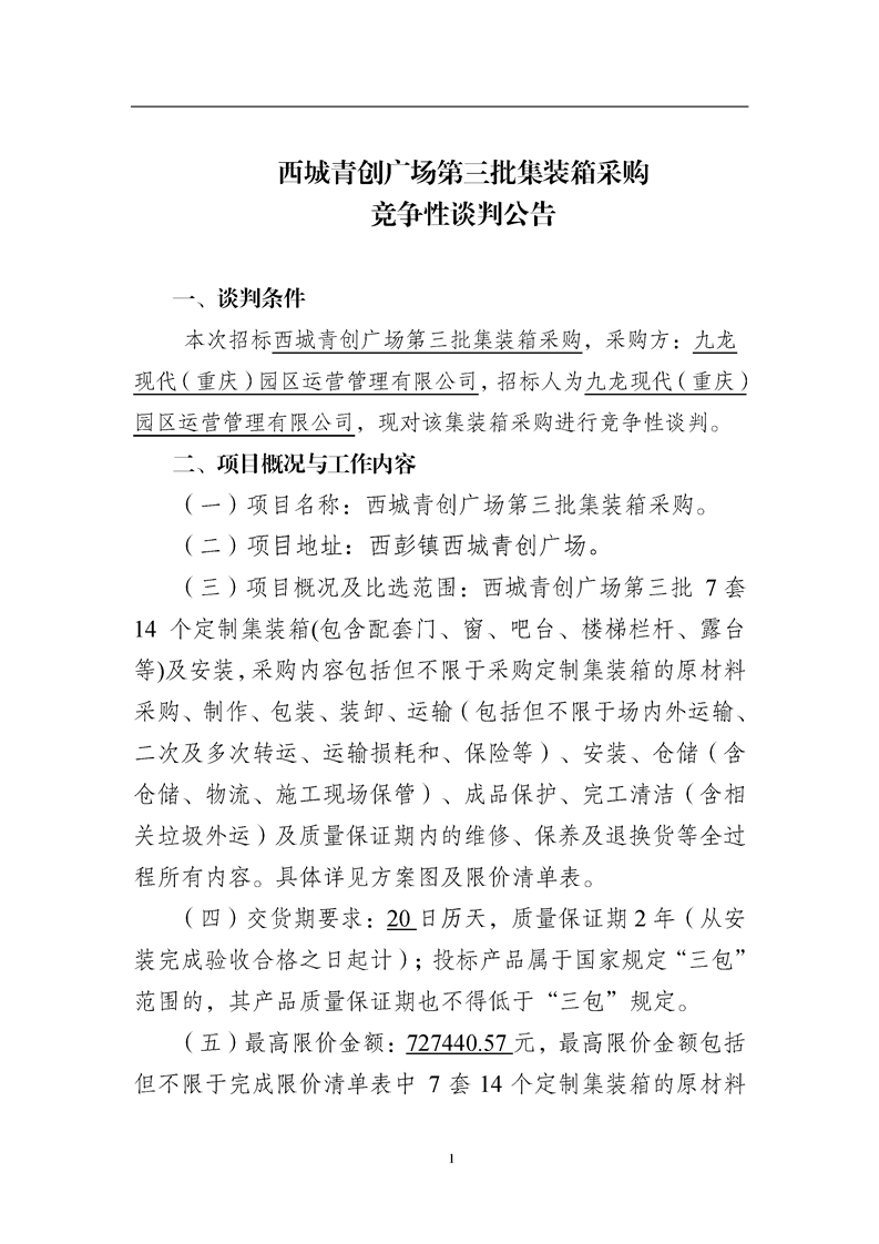 西城青创广场第三批集装箱采购竞争性谈判公告