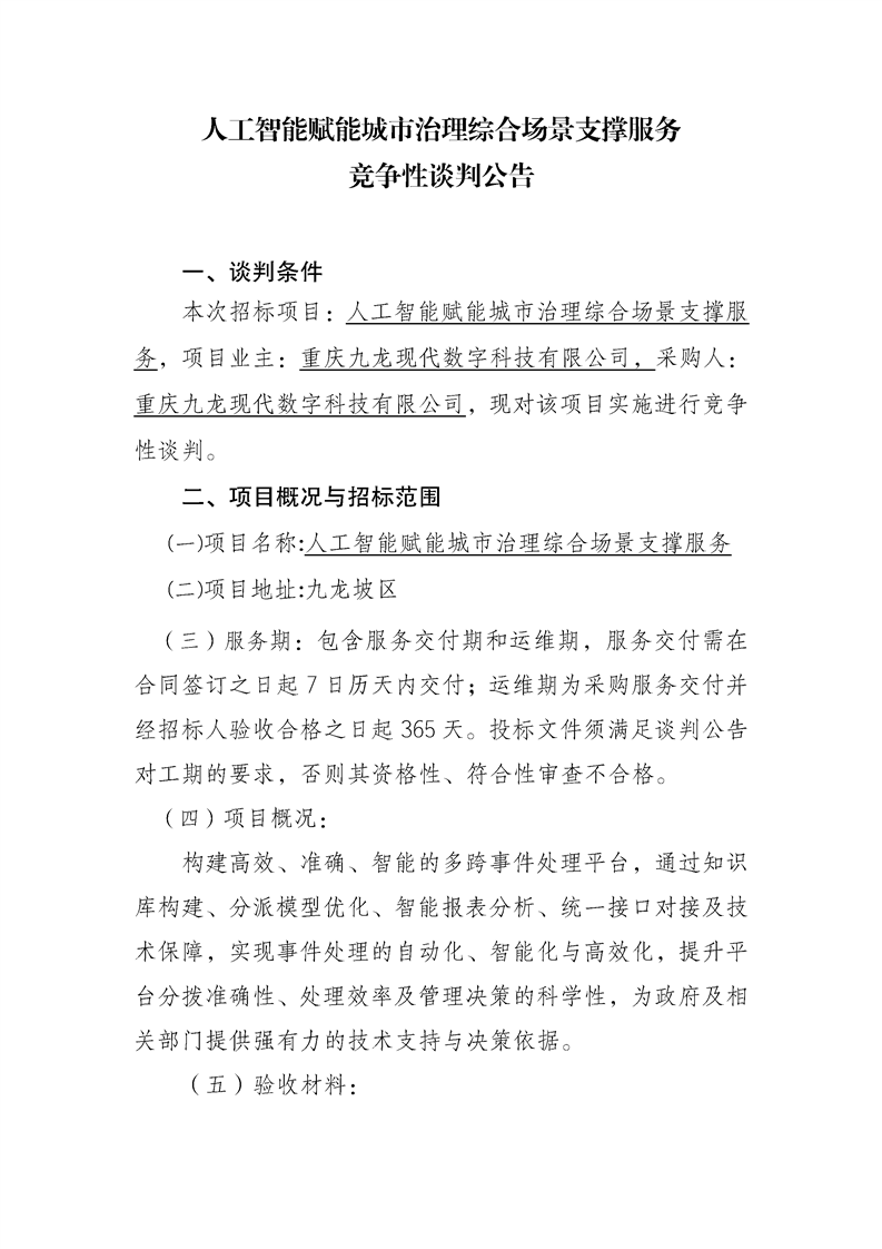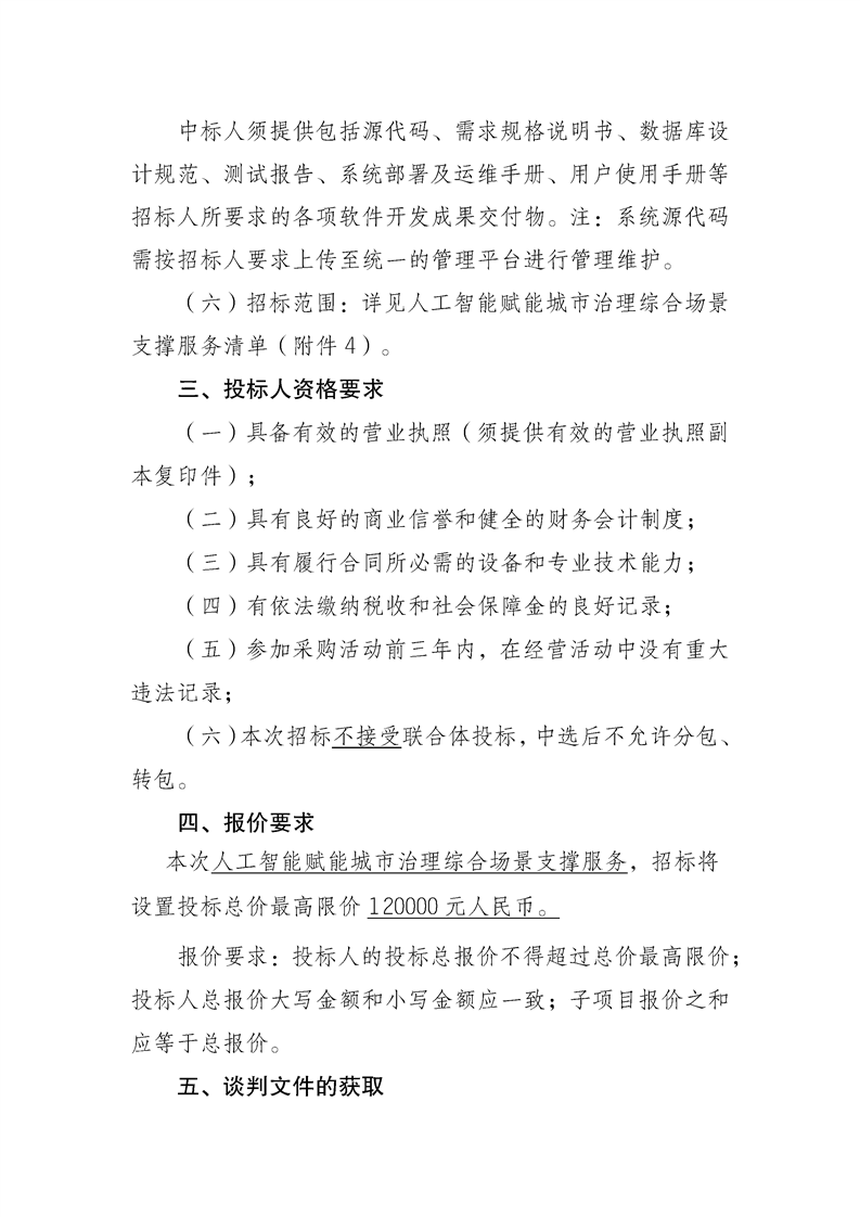人工智能赋能城市治理综合场景支撑服务竞争性谈判公告
