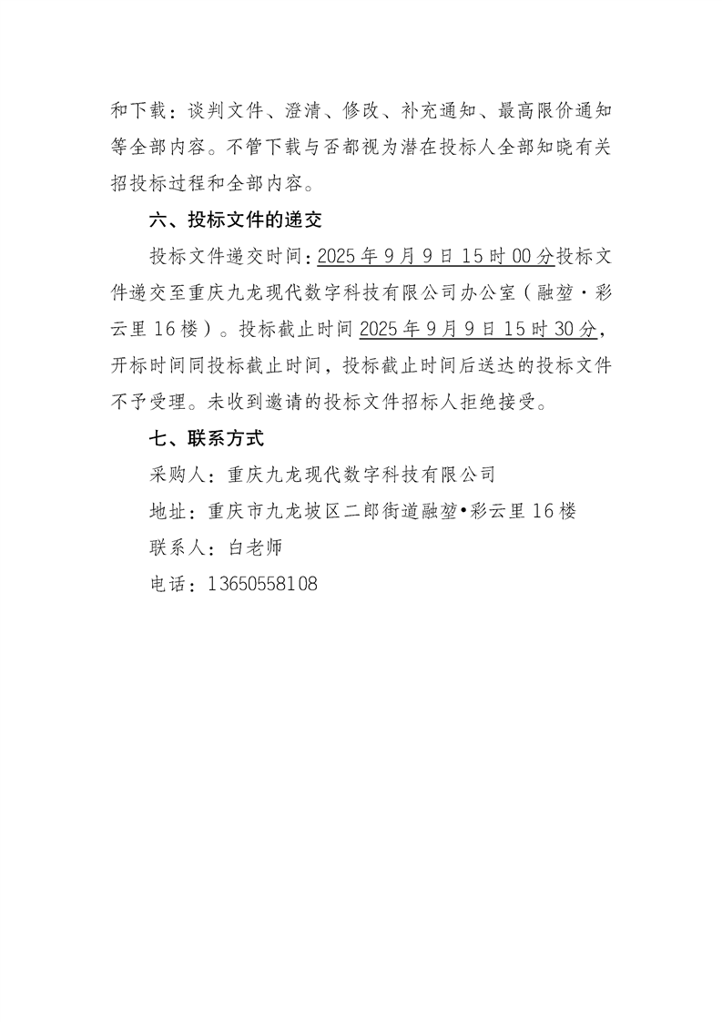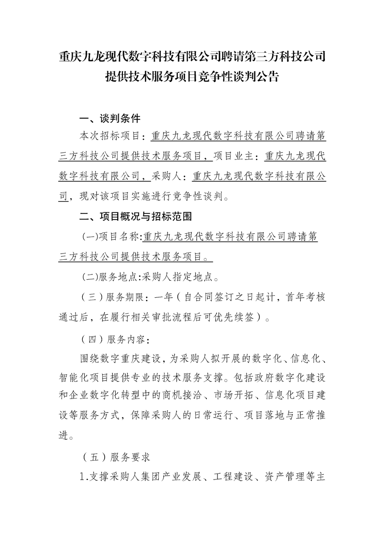 重庆九龙现代数字科技有限公司聘请第三方科技公司提供技术服务项目竞争性谈判公告