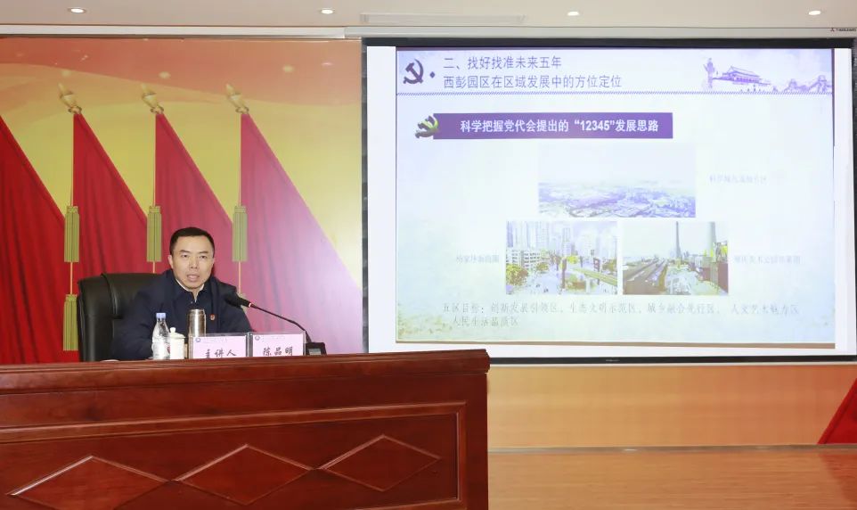 按照区委统一部署,1月25日,九龙坡区委常委、政法委书记陈品明莅临西彭园区为园区党工委、重庆铝开投集团党委、党员干部宣讲党的十九届六中全会精神。