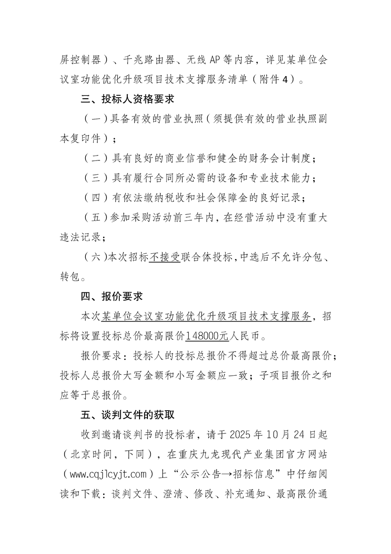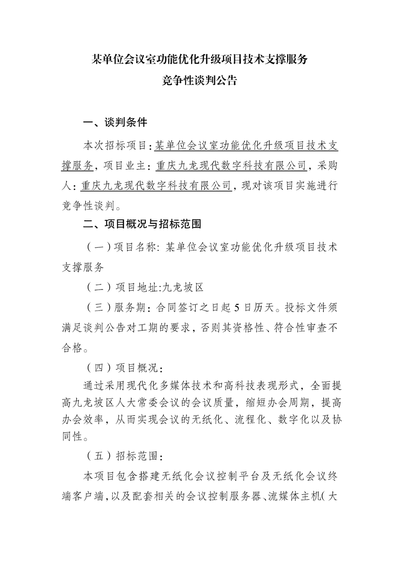 某单位会议室功能优化升级项目技术支撑服务竞争性谈判公告