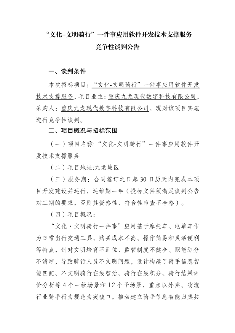 “文化-文明骑行”一件事应用软件开发技术支撑服务竞争性谈判公告