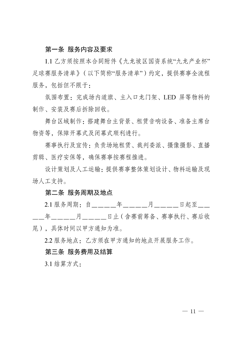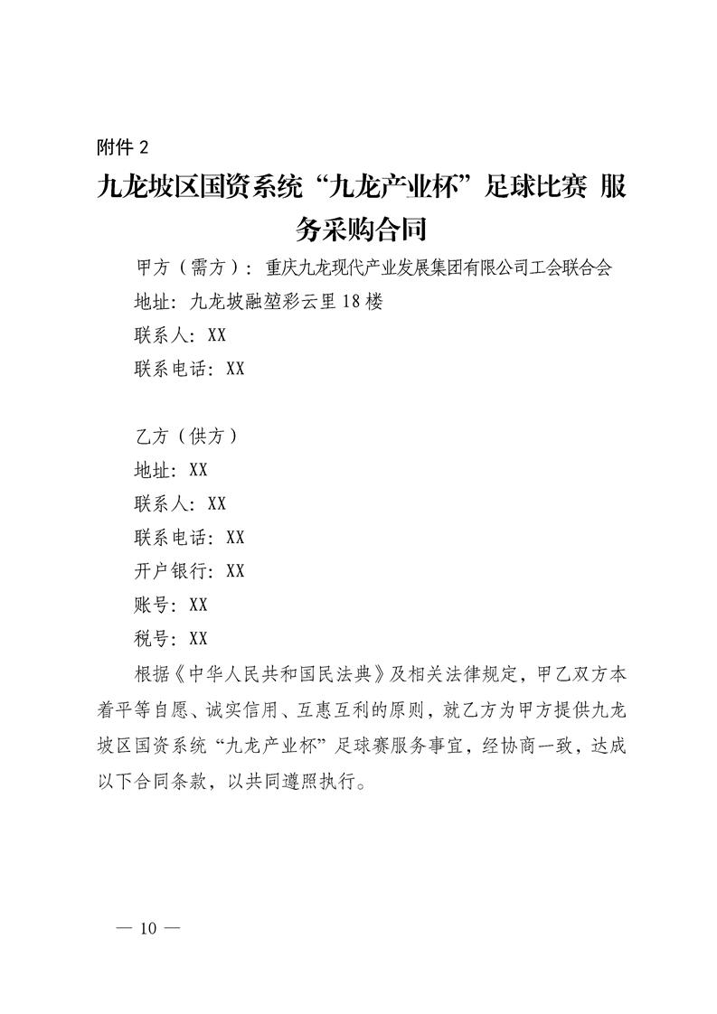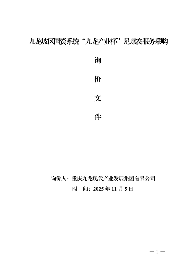 九龙坡区国资系统“九龙产业杯”足球赛服务采购询价文件