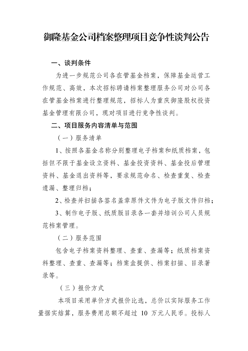 御隆基金公司档案整理项目竞争性谈判公告附件.docx