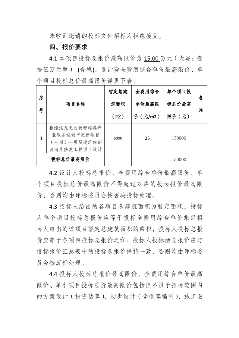 投标人须知:枢纽港九龙园黄磏临港产业服务城城市更新项目(一期)—房屋建筑内部改造及修复工程项目设计竞争性谈判.doc