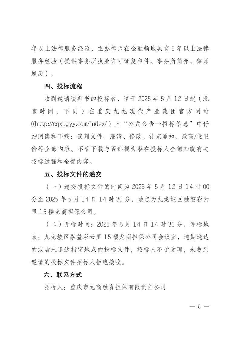 重庆市龙商融资担保有限责任公司见贷即保业务专项法律服务竞争性谈判公告