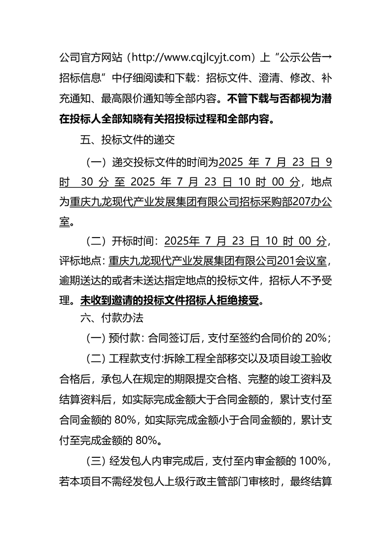 竞争性谈判:重庆枢纽港九龙新城D81厂房改造项目(一期)旧资产拆除、存放工程附件.rar